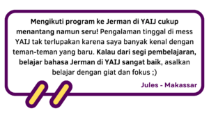 Ria adalah peserta YAIJ yang beruntung banget! Dia berkesempatan untuk tinggal dengan Gast Familie di penthouse dengan pemandangan indah di Jerman. Yuk dengarkan ceritanya.